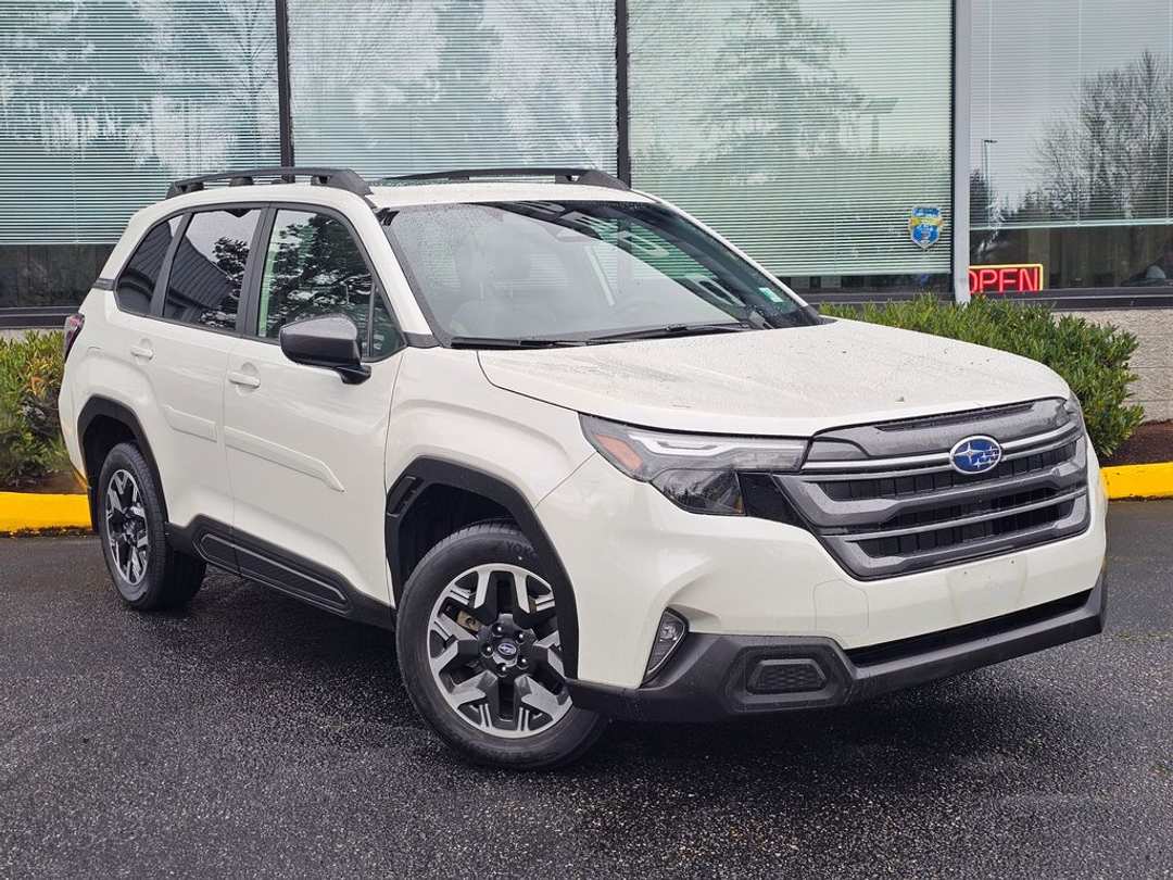 CARFAX One-Owner. Clean CARFAX.4-Wheel Disc Brakes, 6 Speakers, ABS brakes, Air Conditioning, Alloy wheels, AM/FM radio: SiriusXM with 360L, Anti-whiplash front head restraints, Auto High-beam Headlights, Auto-Dimming Mirror w/Compass & HomeLink, Automatic Emergency Steering, Automatic temperature control, Blind-Spot Detection (BSD)/RCTA System, Body Side Molding - Crystal White Pearl, Brake assist, Bumpers: body-color, Door Projector Lights, Driver door bin, Driver vanity mirror, Dual front impact airbags, Dual front side impact airbags, Electronic Stability Control, Emergency communication system: MySubaru Safety (3-year free trial), Exterior Parking Camera Rear, Four wheel independent suspension, Front anti-roll bar, Front Bucket Seats, Front Center Armrest, Front dual zone A/C, Front fog lights, Front reading lights, Fully automatic headlights, Heated door mirrors, Heated Front Bucket Seats, Heated front seats, Illuminated entry, Knee airbag, Leather steering wheel, LED Upgrade, Low tire pressure warning, Occupant sensing airbag, Outside temperature display, Overhead airbag, Overhead console, Panic alarm, Passenger door bin, Passenger vanity mirror, Power door mirrors, Power driver seat, Power moonroof: Panoramic, Power Rear Gate, Power Rear Gate & Blind Spot Detection w/RCTA, Power steering, Power windows, Premium Textured Cloth Upholstery, Radio data system, Radio: Subaru 11.6" Multimedia Plus System, Rear anti-roll bar, Rear seat center armrest, Rear window defroster, Rear window wiper, Remote keyless entry, Security system, Speed control, Speed-sensing steering, Splash Guards, Split folding rear seat, Spoiler, Steering wheel mounted audio controls, Sunshade - 2nd Row, Tachometer, Telescoping steering wheel, Tilt steering wheel, Traction control, Trip computer, Variably intermittent wipers, Wheels: 17" x 7.0 J Dark Metallic Aluminum-Alloy.Recent Arrival! Odometer is 4665 miles below market average! 26/33 City/Highway MPG2025 Subaru Forester Premium 2.5L 4-Cylinder DOHC 16V AWD Crystal White PearlAdditional disclaimer: All vehicles are one of each. All Pre-Owned or Certified vehicles are Used. The offering price of this vehicle is conditioned on a negotiated waiver of implied warranties if the Buyers Guide on the vehicle is AS IS-NO DEALER WARRANTY. If the Buyers Guide on the vehicle is IMPLIED WARRANTIES ONLY, the offering price includes implied warranties. Call or see Dealer to determine the form of Buyers Guide on the vehicle. A dealer documentary service fee of up to $200 may be added to the sale price or capitalized cost. Prices exclude tax, title, and license. All transactions are negotiable including price, trade allowance, interest rate (of which the dealer may retain a portion), term, and documentary service fee. Any agreement is subject to the execution of contract documents. The customer is requested to verify the existence and condition of any equipment listed.